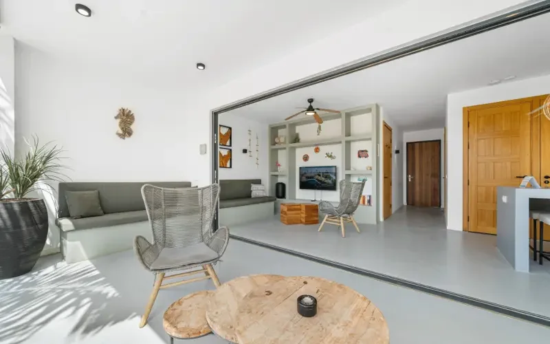 Lay-out Beschrijving Modern en stijlvol appartement op de begane grond van het boutique vakantieresort Belnem House (2023). Dit volledig gemeubileerde 2-slaapkamer appartement beschikt over een lichte woonkamer met open keuken en heeft vanaf de porch direct toegang tot het zwembad. Een mooie investering en tegelijk een leuk verblijf op Bonaire. Lay-out Het appartement heeft een woonoppervlakte van...
