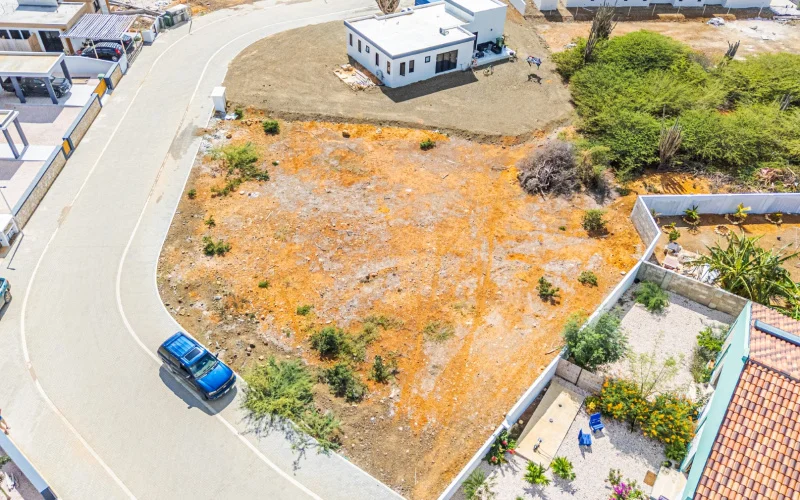 Het is gelegen aan een met klinkers bestrate weg. De oppervlakte van deze ruime kavel is 1.050 m2. Er is geen hoogteverschil en het perceel is al schoongemaakt. Bij 2 aangrenzende buren is al een gemetselde afscheidingsmuur.