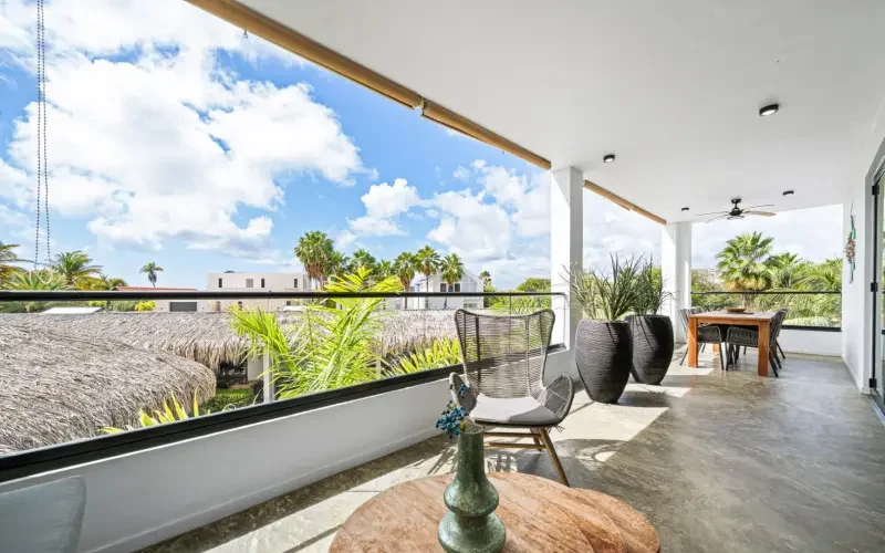 Modern appartement op de eerste verdieping van het boutique-stijl vakantiecomplex Belnem House (2023). Dit volledig gemeubileerd appartement met 2 slaapkamers heeft een woonkamer met open keuken. Vanaf de ruime porch is er uitzicht op het zwembad.