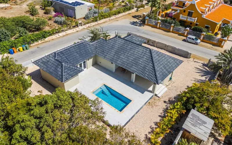 Lay-out Beschrijving Sfeervolle vrijstaande woning met 3 slaapkamers en een magnapool in de populaire wijk Belnem. Het L-vormige huis is gebouwd rond 2020 op een hoekkavel van 841 m2 erfpachtgrond en ligt op loopafstand van Bachelor Beach (minder dan 300 meter). De woning is per direct beschikbaar. Lay-out Deze woning met een leuke porch en een royale tuin rondom heeft uitzicht op Landhuis Belnem....