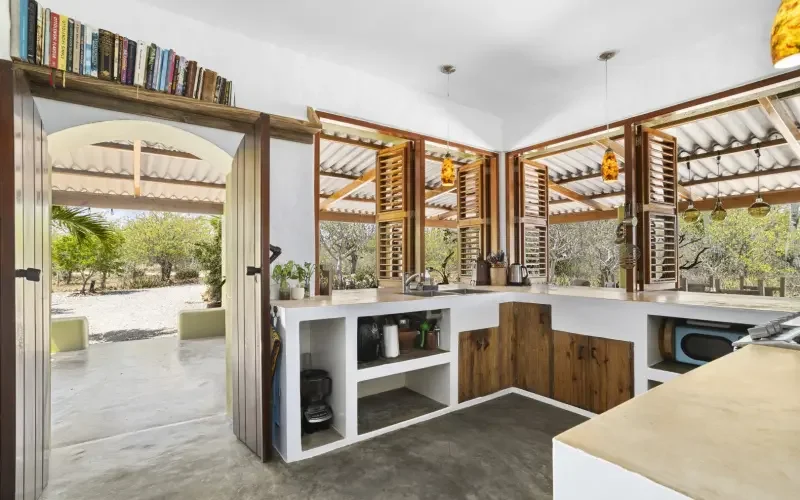 HoofdverblijfBij binnenkomst in de hoofdwoning valt direct de open en luchtige bouwstijl op. De woning is rondom voorzien van hardhouten shutters, waardoor er altijd een aangename bries door het huis waait. Elke shutter is afzonderlijk verstelbaar voor optimaal comfort.