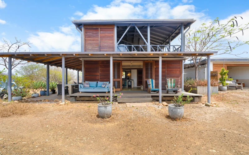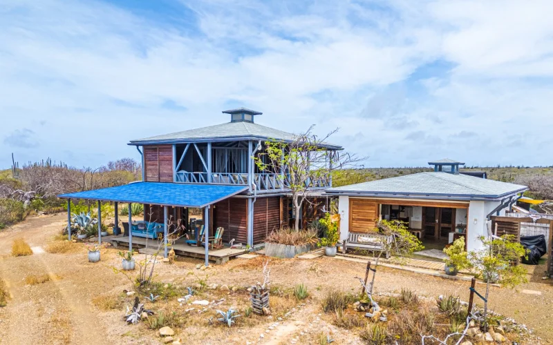 Beschrijving Landelijk wonen op een kavel van 5.3 hectare. Luga Aleha S5 is gebouwd in 2017 en bestaat uit twee huizen met elk een eigen keuken, badkamer en slaapkamer. De perfecte woning voor wie houdt van rust, ruimte en natuur. Lay-out Luga Aleha is een gated community in het gebied Bolivia. Het ligt tussen Tras di Montana en Lagoen en kenmerkt zich door zeer ruime kavels die gedeeltelijk omheind zijn. Alle woningen op het terrein zijn volledig off-grid. Na circa 5 minuten rijden na de toegangspoort ligt de woning vrij dicht op de weg. Aangezien er alleen bestemmingsverkeer komt, is dat juist een voordeel. Bij binnenkomst op het terrein liggen de 2 woningen aan de rechterkant. De hoofdwoning met 2 etages bestaat uit een omgebouwde wooncontainer uitgebreid met Surinaams hardhout, waardoor het een complete woning is. Aan 3 zijden zijn er openslaande deuren met zitjes. In het containerdeel zijn de open keuken en de badkamer met ligbad. Er is een vaste trap die leidt naar de open slaapkamer op de eerste etage. Hier is ook een zithoek met prachtig vergezicht. Rondom de woning zijn diverse zitplekken gecreëerd, ideaal om te genieten van de rust en het uitzicht op het omliggende terrein. Er is een hottub aanwezig, die verwarmd kan worden door middel van zonnewarmte of een houtkachel en een parasol die bescherming tegen de zon biedt. Naast de woning ligt het gastenverblijf met eigen keuken, badkamer en slaapkamer. De woonkamer met pantry is zeer ruim en heeft deuren die volledig open kunnen. Dit zorgt voor een ruimtelijke effect en geeft veel licht. Grenzend aan de woonkamer ligt de slaapkamer met mogelijkheid voor een kastenwand. De keuken beschikt over een gaskookplaat. Naast de keuken is de badkamer. Meerdere poorten geven toegang tot verschillende delen van het perceel, waaronder het niet-omheinde terrein en het watervulstation. Ook is er een 40 ft opslagcontainer voor extra bergruimte. Achter de woning is een carport. Technische details De woning is volledig off-grid. Er zijn in totaal 12 zonnepanelen met 6 nieuwe lithium accu’s, Daarnaast is er een zonneboiler en als back-up een (nog nieuwe) generator. Het huis beschikt over 220V stopcontacten. Verder heeft de woning nog een 40 ft container voor extra opslag en 3 watertanks met ieder 5.000 liter opslag. De hoofdwoning beschikt over een inductieplaat van AEG en de naast gelegen woning beschikt over een gaskookplaat. Oppervlakte (totaal 242 m2):Hoofdwoning: 128 m2Gastenverblijf: 69 m2Technische ruimte: 45 m2 Eigenaren van een kavel op Luga Aleha worden automatisch lid van de Vereniging van Eigenaren Luga Aleha. Er zijn geen jaarlijkse verplichte bijdragen (momenteel). Het complex heeft 2 toegangspoorten. De poort aan de zijde van Tras di Montana is te openen via een telefoonnummer, de andere poort nabij Lagoen heeft een hangslot Pluspunten + Hoofdwoning met apart gastenverblijf+ Geheel zelfvoorzienend+ Eigendomsgrond 5.3 hectare+ Veel privacy+ Hottub houtgestookt Omgeving De woning is gelegen in een rustige, landelijke omgeving waar rust, ruimte en natuur gewaarborgd zijn. Ondanks de rustige en privé ligging, is het centrum van Kralendijk slechts 15 minuten en Rincon 10 minuten rijden. Het vliegveld bevindt zich op ca. een half uur rijden. Bestemmingsplan Bekijk de plankaart: Ruimtelijk ontwikkelingsplan BonaireLees de bestemmingsplan omschrijving: Agrarisch-Kunuku