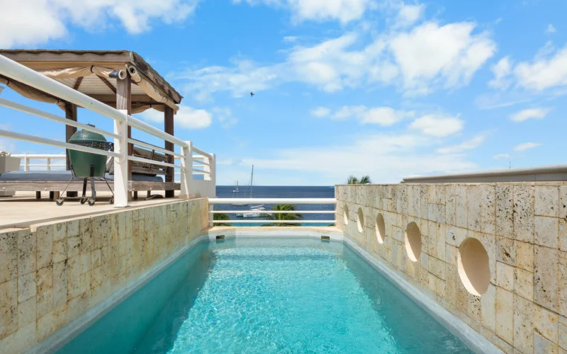 Misschien wel het mooiste penthouse van Bonaire staat nu te koop. Dit penthouse bevindt zich op de gehele etage op de bovenste verdieping van SeaSide Apartments. Er is panoramisch zeezicht bij deze fantastische woning, wat zelfs een eigen zwembad heeft. Onderin in het gebouw is nog 1 garagebox en het penthouse beschikt over een parkeerplaats voor het gebouw.