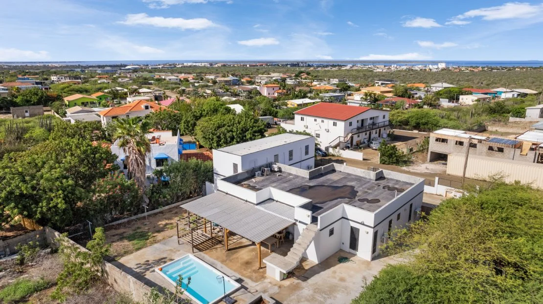 DescriptionKaya Oro 45 – Residential Home with Two Apartments in a Quiet Neighborhood Kaya Oro 45 offers a unique opportunity to live in a peaceful and desirable area of Bonaire, with plenty of space, comfort, and potential. This spacious home, featuring two separate apartments, combines the best of both private living and the possibility for rental income or guest accommodation. The main house itself is perfect for a family, offering three large bedrooms and two bathrooms. The open-plan living area creates a cozy atmosphere, and the kitchen is functional and well-laid-out. At the side of the property, you’ll find two separate apartments, each with two bedrooms and a bathroom. These can be used as rental units for additional income or as guest rooms for friends and family. This offers great flexibility and is an excellent investment. With a built area of 254 m² and a total plot size of 919 m² long lease land, you have all the space you need. What truly sets this property apart is the view from the roof, where you can enjoy panoramic views of the island of Klein Bonaire. The quiet location ensures you can enjoy this view in complete privacy while still being close to amenities and the beach. Kaya Oro 45 is a versatile property that provides an ideal home for families and a fantastic investment for those seeking extra rental income. Contact us for more information or to schedule a viewing!